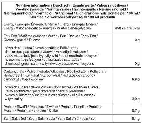 Unsere natürlich gebraute Sojasauce mit weniger Salz hat folgende Nährwerte pro 100 ml: