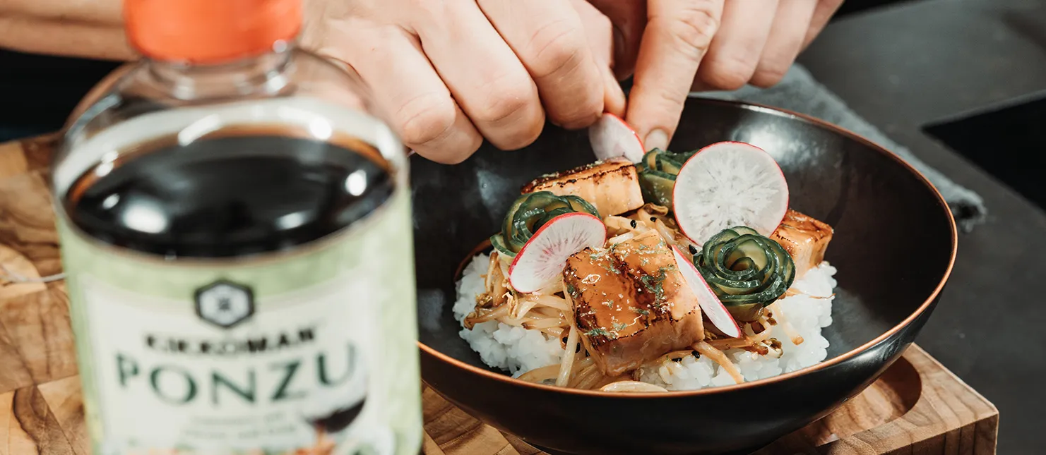 - Fruchtig-frisch: Kikkoman Ponzu, Honig und Ingwer sorgen für etwas mehr Pep auf dem Teller.