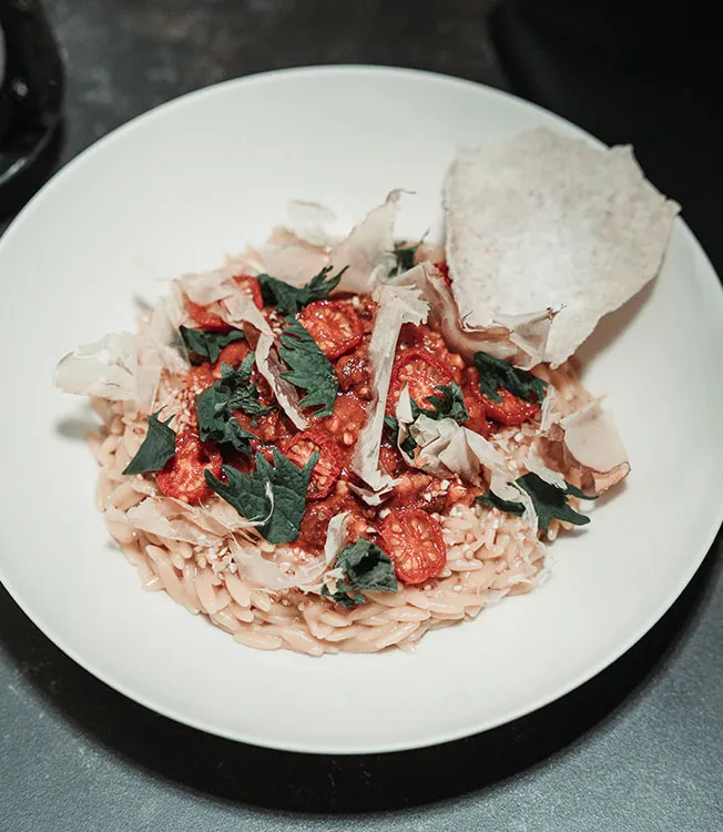 Das Nudelwasser aufkochen, Kikkoman Sojasauce zugeben und Orzo nach Packungsanweisung garen. Anschließend gleich mit Butter, Olivenöl und fein gehobeltem Parmesan mischen.