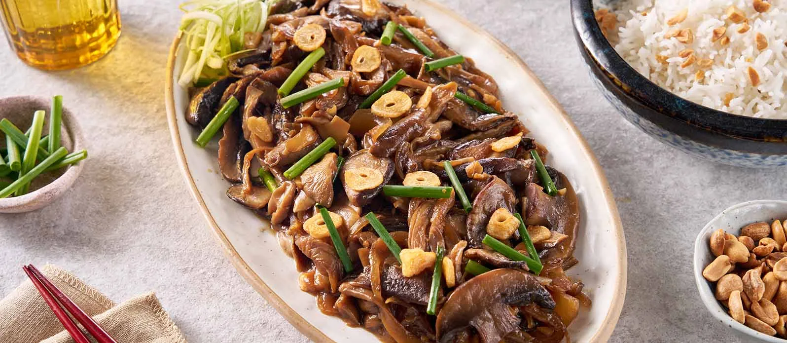 Eine aromatische Pilzsauce aus Shiitake, Austernpilzen und Champignons, gekocht mit Kikkoman Sojasauce, Lorbeerblättern und Reisessig. Ein einfaches, reichhaltiges Wohlfühlessen mit einer subtilen asiatischen Note.