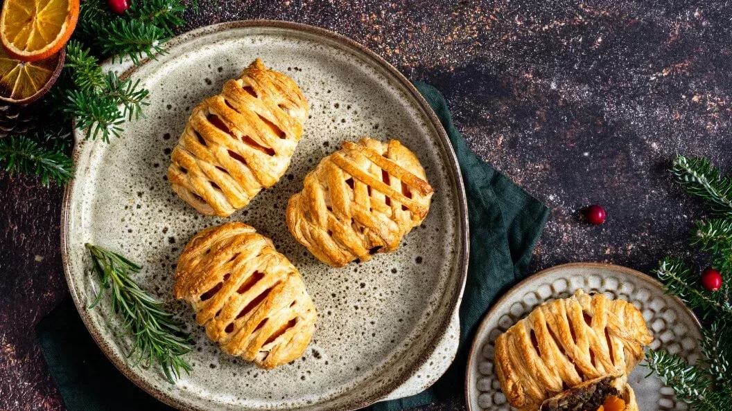 Die Briten lieben ihren Christmas Pudding! Hierbei handelt es sich um eine Art gekochten oder gedämpften Kuchen, der mit Trockenfrüchten und Nüssen gefüllt ist. Früher wurde der Pudding in ein Tuch gewickelt und in einem Wasserbad gekocht. Heute wird er eher in einer Puddingform zubereitet. Ist der Pudding fertig, wird er meist mit Brandy übergossen und flambiert. Doch bevor es süß wird, gibt’s zunächst etwas Deftiges wie zum Beispiel Beef Wellington — ein saftiges Stück Rindfleisch, eingewickelt in Blätterteig. So geht Weihnachten im UK-Style!