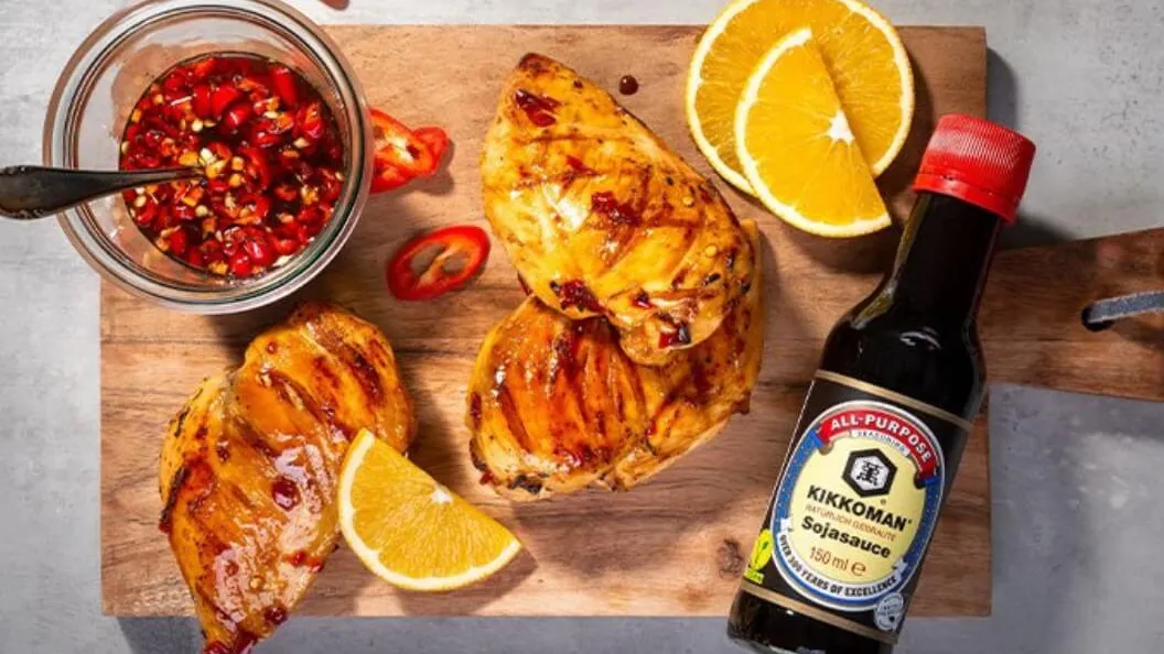 Die Formel Fruchtsaft, etwas Öl und Kikkoman Sojasauce sorgt für richtig Geschmack.