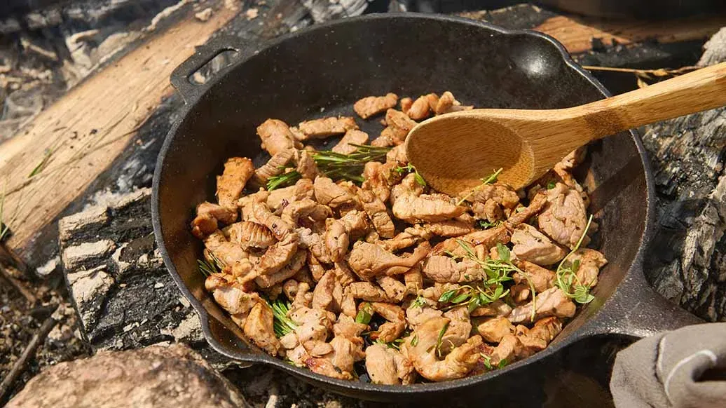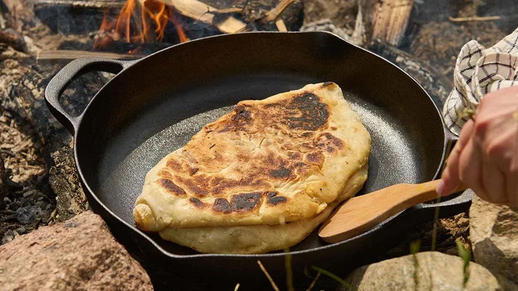 Auf dem Grillrost in einem gusseisernen Topf oder auf einem Blech im Backofen bei 210 Grad etwa 20 bis 30 Minuten backen.