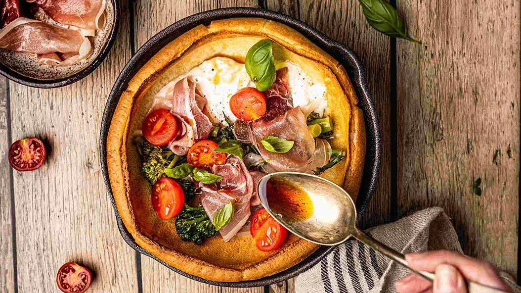 „Dutch Baby“ – Pfannkuchen mit Burrata und Prosciutto