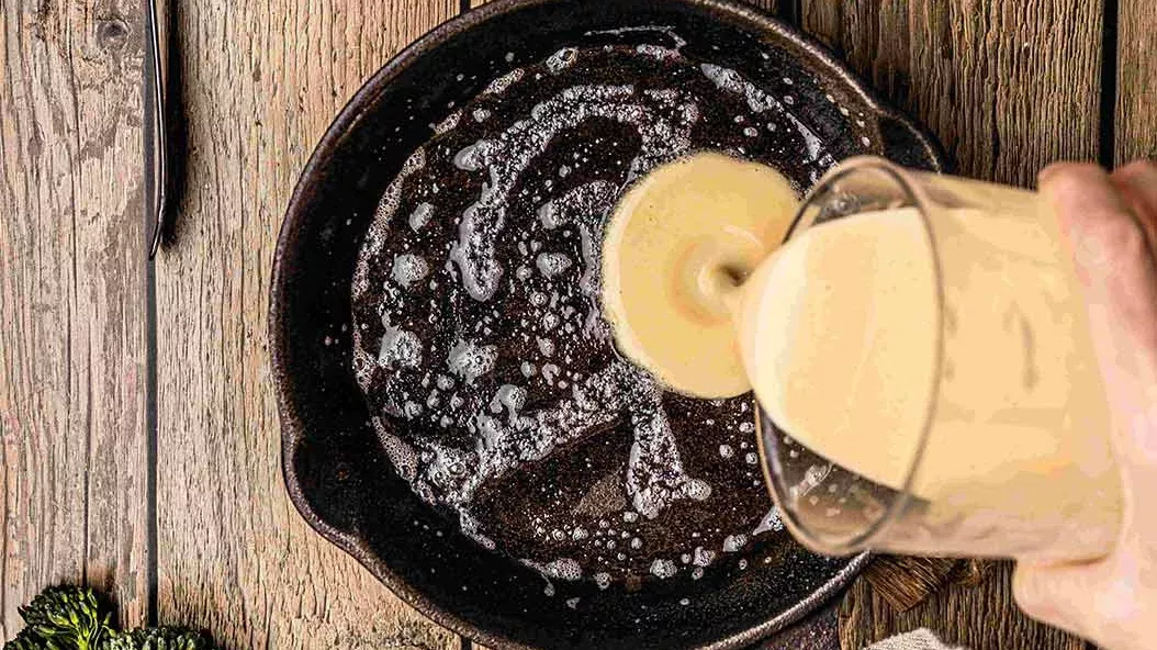 Anders als die namensgebenden Niederlande sind diese fluffigen Pfannkuchen keineswegs niedrig und flach! Hier als pikante Version mit Burrata-Käse, geräuchertem Schinken, knusprig gebratenem Bimi®-Brokkoli und einem Hauch feinsäuerlicher Kikkoman Ponzu Zitrone – die perfekte Wahl für ein köstliches und gesundes Frühstück.
