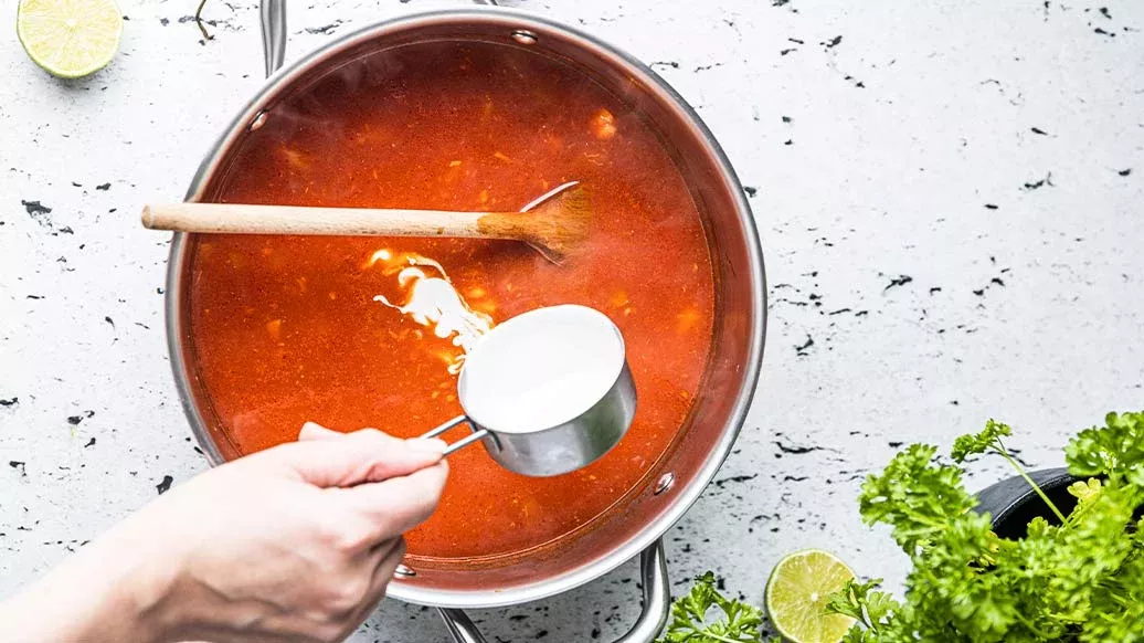 500 g passierte Tomaten – 1 EL Kikkoman natürlich gebraute Sojasauce – 1 l Brühe