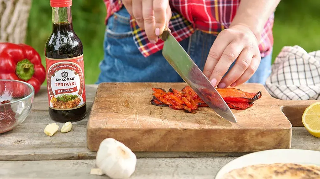 Paprika, Chipotle und Knoblauch auf einem Schneidebrett fein hacken. Olivenöl und Zitronensaft hinzufügen und zu einer Paste verrühren. Mit Kikkoman Teriyaki Marinade abschmecken. Jedes Fladenbrot mit einer großzügigen Menge der Paprikapaste bestreichen. Sardellen und Kirschtomaten über die Paprikapaste streuen. Die Fladenbrote mit Olivenöl beträufeln und mit Basilikum garnieren.