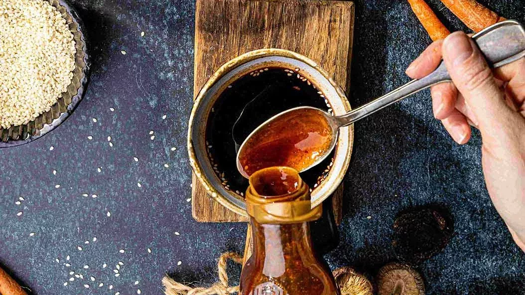 3 EL Kikkoman natürlich gebraute Sojasauce – 1 EL Kikkoman scharfe Chilisauce für Kimchi – 1 EL Sesamsamen – 1 Frühlingszwiebel