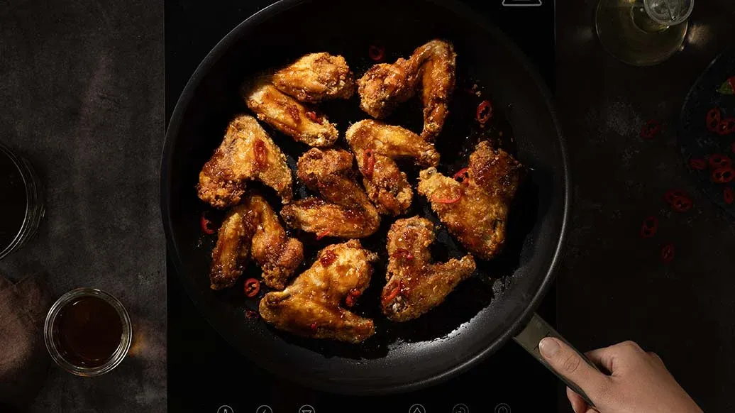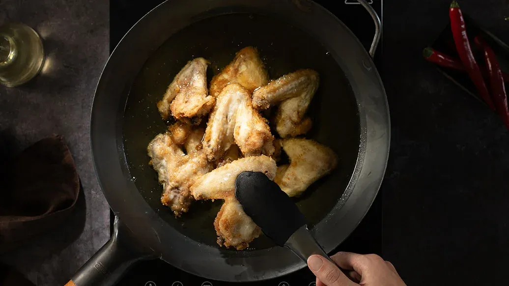 Das Geheimnis für wirklich knuspriges und saftiges koreanisches Brathähnchen liegt im doppelten Frittieren – genau wie bei Pommes. Der zweite Teil des Geheimnisses ist die perfekte Glasur mit Kikkoman Teriyaki BBQ Sauce nach koreanischer Art.