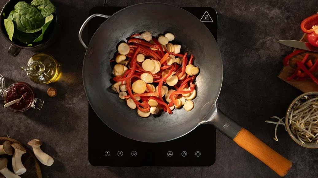 300 g Austernpilze, in Streifen – 2 rote Paprika, in feinen Streifen – 3 EL Pflanzenöl – 6 EL Kikkoman Teriyaki BBQ Sauce nach koreanischer Art