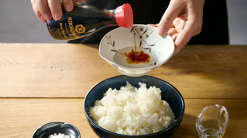 120 g Sushi-Reis – 30 g Puderzucker – 20 ml Reisessig – 20 ml Kikkoman natürlich gebraute Sojasauce