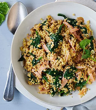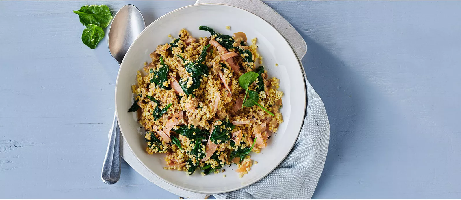 Räucherlachs-Spinat-Hirsepfanne
