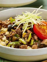 Thailändisches Schweinehackfleisch mit Kohl und Chili
